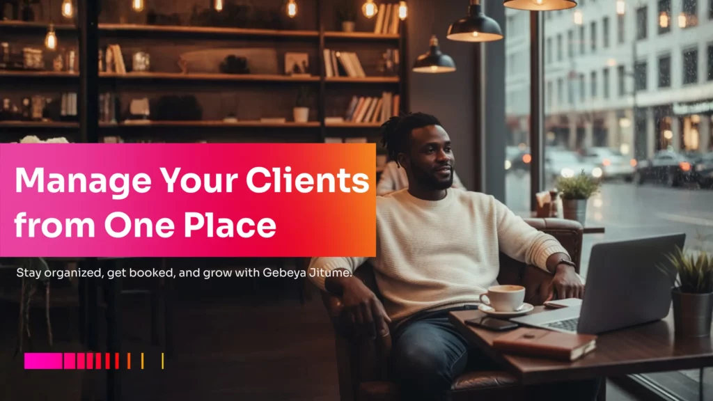 Gebeya Jitume gives every service provider a personal dashboard that organizes client data automatically. You can instantly see who booked you, when their session is, and what service they chose using an easy client management tool for freelancers.